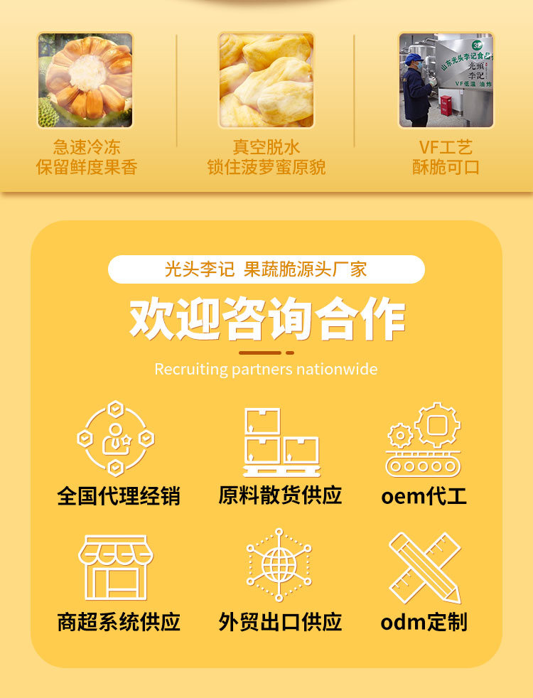 苗蔬蔬手抓包菠蘿蜜脆果蔬脆片廠家生產(chǎn)散裝稱重代理批發(fā)代加工出口